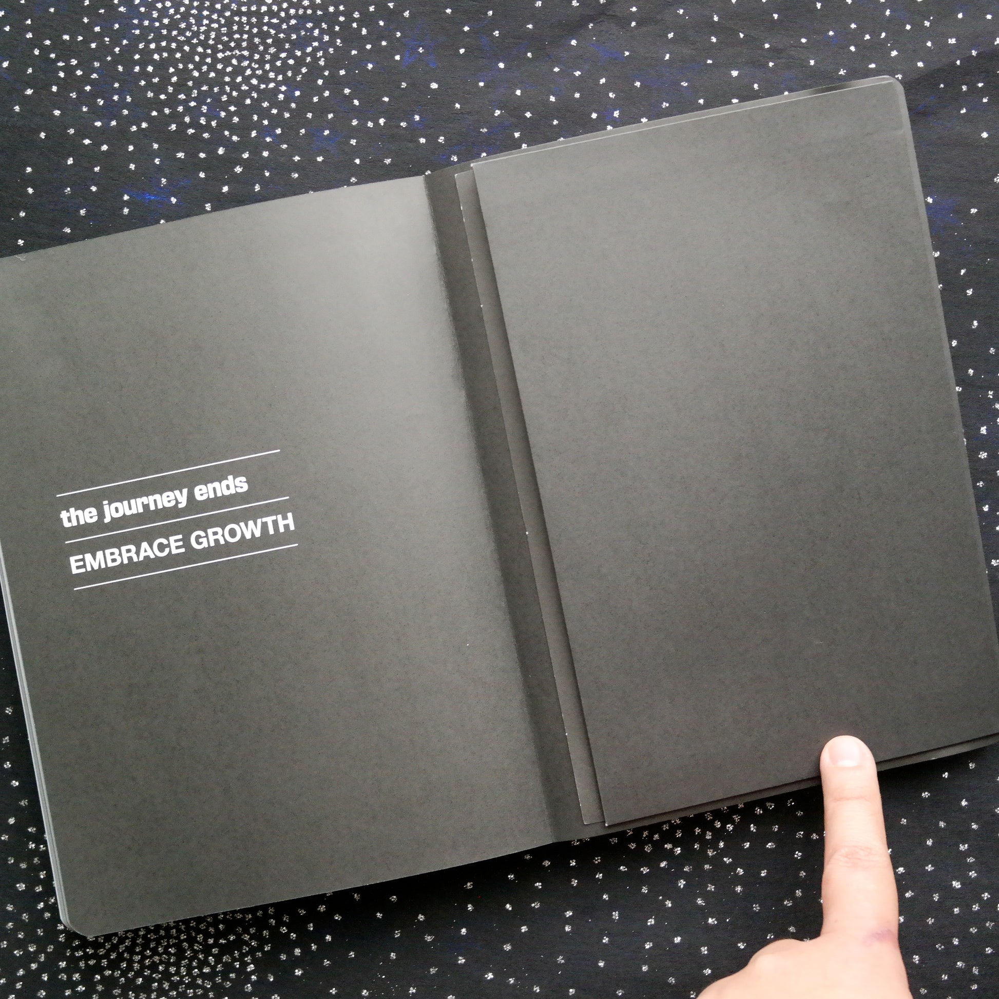 - Diseño minimalista con portada motivacional “Growth – yes, a long journey”