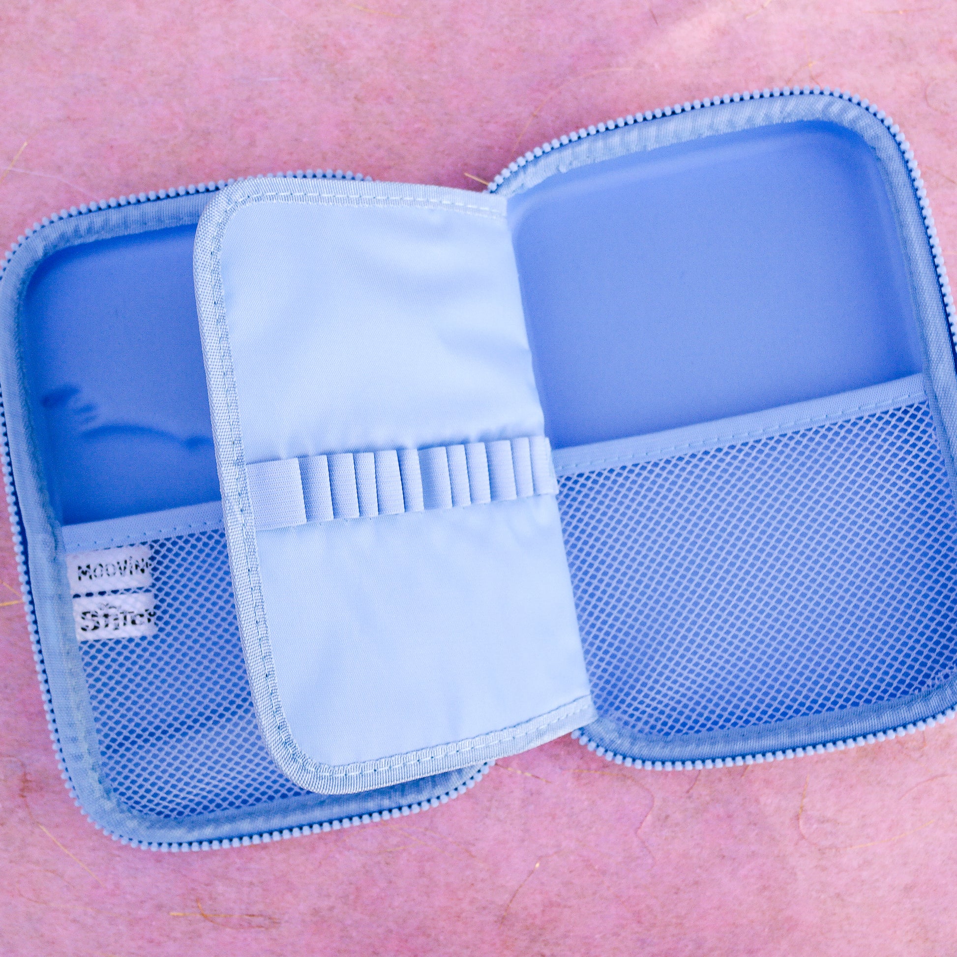 El interior ofrece amplio espacio para lápices, marcadores, cables y accesorios pequeños, manteniendo todo protegido y en orden.
