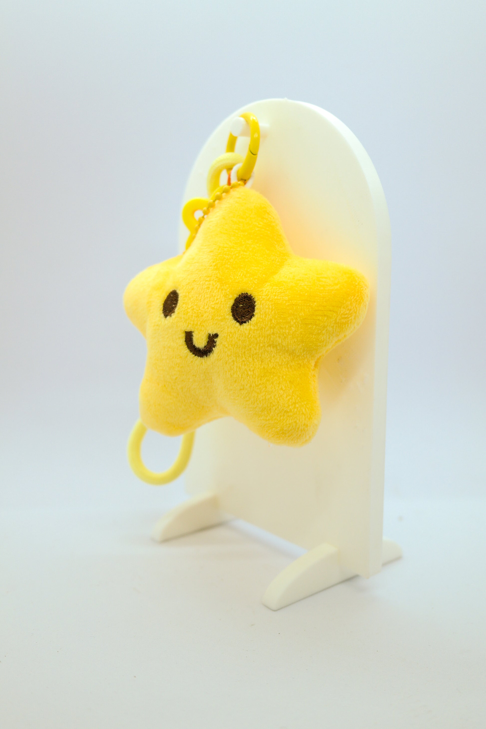 Dale un toque tierno y divertido a tus llaves, mochila o bolso con este adorable llavero en forma de estrella. Hecho de peluche suave, con expresión kawaii bordada y accesorios plásticos en tonos amarillos que lo hacen aún más alegre.